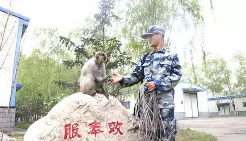迈出了成功的第一步,他们开始帮助猕猴融入军营新生活。