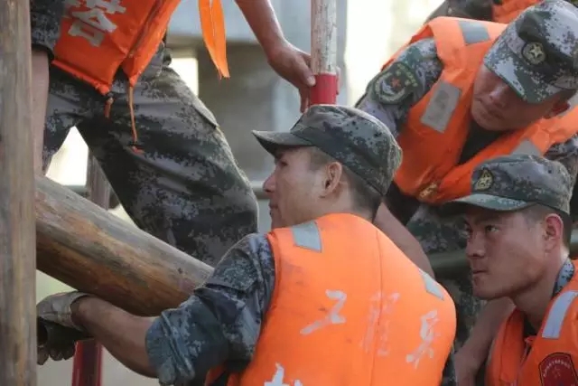 一夜奋战过去,官兵们并没有精疲力竭,依然坚持在抢险第一线。