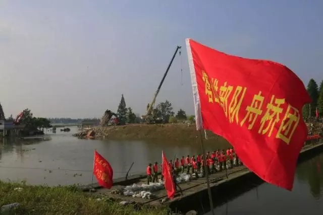 专业力量就要干专业的事,这才25分钟,100米的浮桥就搭好了,运送物资什么的就方便很多啦!