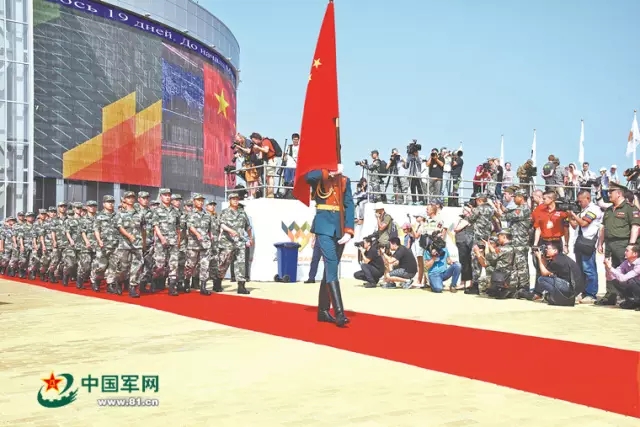 中国队步入“国际军事比赛-2016”赛场。梁蓬飞 摄