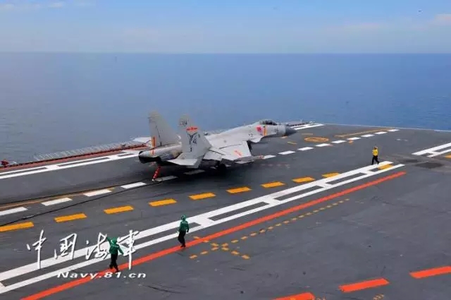 新一批歼-15舰载战斗机飞行员成功阻拦着舰