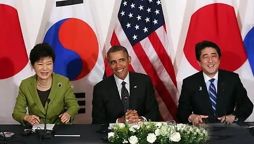 资料图:韩国总统朴槿惠、美国总统奥巴马、日本首相安倍晋三。