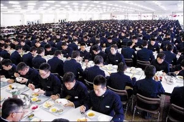 通常是千人同时用餐而无喧哗之声,日本的军官食堂,在门口有一个摆有样品的橱窗,各种配好的“定食”(即套餐)样品下标着价格和编号,跟国内的中式快餐差不多。军官们只要将硬币投入旁边的售票机,机器便吐出一张餐票。就餐者拿着餐票,交给餐厅里的服务员。在柜台前,服务员见到顾客后,嘴里不停地说着欢迎的话,动作非常麻利,很快就将3-4个人的饭递了出来,不仅服务态度好,并且效率很高。