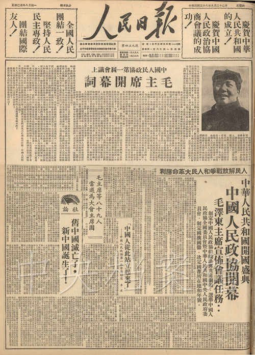 1949年9月22日—30日,《人民日报》关于中国人民政治协商会议第一届全体会议的部分报道。