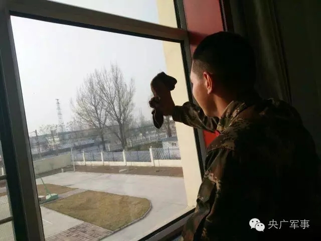 军营的玻璃经过“先湿后干,先抹布后报纸”的工艺洗礼之后,那可是“苍蝇打滑、蚊子劈叉”。想看窗外的美景时一定要当心哦,别碰碎了“看不见”的玻璃。