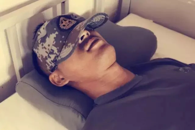 迷彩帽,军人着装的重要部分。身为一顶帽子,它不甘心只做一顶帽子。这不,它又挺身眼罩界,担负起眼罩的职责。在每个午休时间段,它都高昂着“鸭嘴”炫耀着自己的多才多艺。