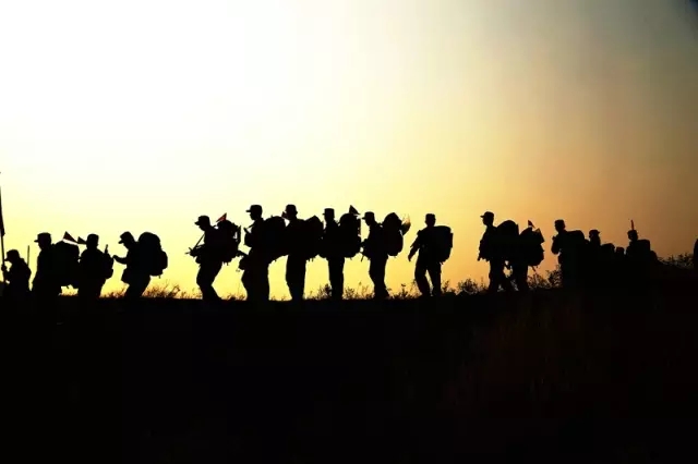 《战友情深》:拉练途中,许多官兵的脚上都磨出了血泡,再加上负重三十多公斤,战友熊安喜走路一瘸一拐极不方便,同年入伍的战友朱家伟一路牵着他的手,与他携手并行,直到抵达宿营地。