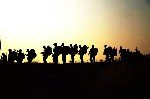《归途》:1月17日,武警8681部队组织7天的长途野营拉练,官兵们背着背囊翻山越岭、长途跋涉。图为夕阳西下,官兵们爬到山顶踏上归途,剪影中一对士兵手拉手温馨的一幕正好被定格了下来。