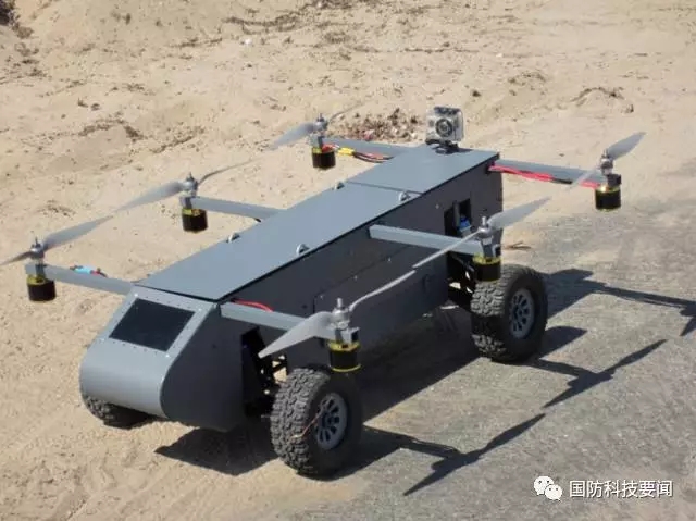 在试飞多旋翼直升机样机“飞行吉普车”后,美国先进战术公司研制出一种用于地面机动监视及递送包裹的小型无人空中/地面车辆,这种四旋翼直升机名为“黑豹”,重24.5千克,可携带4.5千克载荷,以80千米/小时的速度飞行5~10千米;以8千米/小时的速度越野行驶8~97千米。
