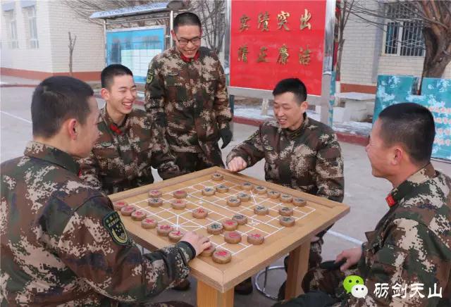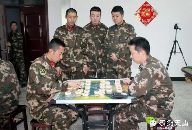 两个人,一张棋盘,一副旗子,下棋比赛正式开始。象棋、军旗是部队官兵们的最爱。这个“敌人”可以是自己的同年兵,也可以是自己班长,甚至是自己的中队长。这场比赛不在乎职务,只是看看谁能笑到最后。