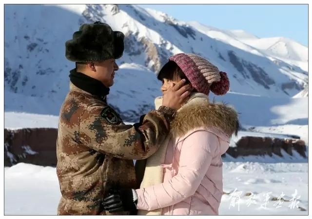 妻子说,我舍不得你。丈夫细语安慰,我在这里守卫着祖国,也是守卫着你,等到雪化的时候,我就回家看你。