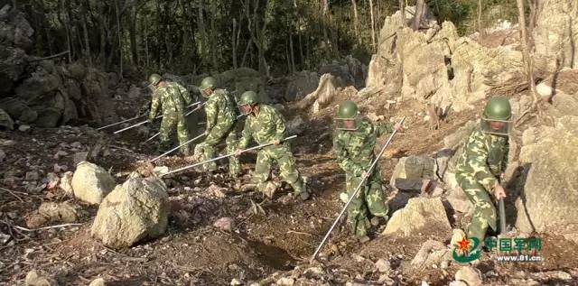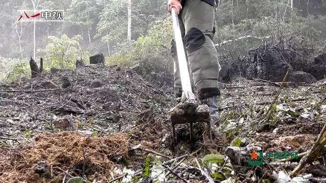 上图是用扫雷耙翻出的爆炸物,但扫雷耙只能在大片面积松软的土壤情况下才可以使用,一些喀斯特地貌的雷区就只能靠探雷器和探雷针进行搜排作业。