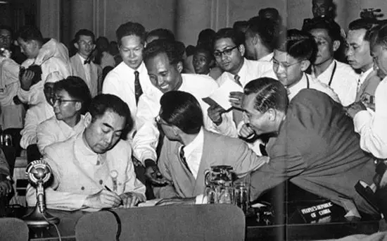 周恩出席万隆会议时,会议休息时间为各国朋友签名留念。