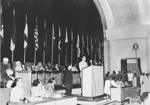 周恩来总理在亚非会议上作补充发言。这18分钟“求同存异”的补充发言征服了全场,树立了新中国真诚友好的形象。(资料图片来源:新华社)