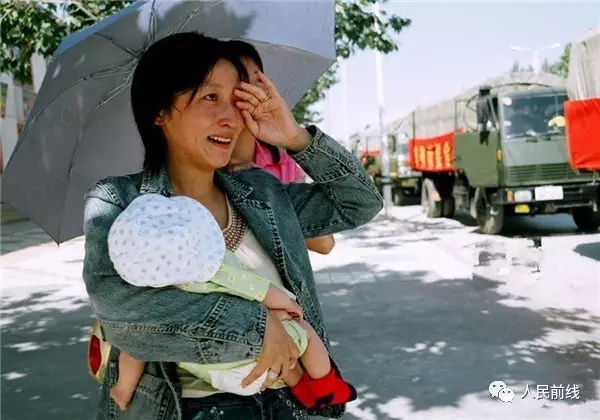 军嫂杨小兰抱着不到半岁的女儿目送丈夫马春林赴神仙湾哨所守防,在车队开动的那一刻,她忍不住流下眼泪,这是多么不舍啊。