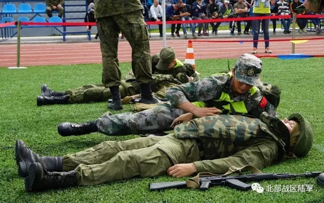 等待参加战场救护比赛的杨叶(左一)