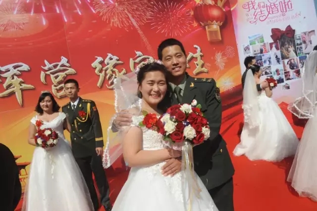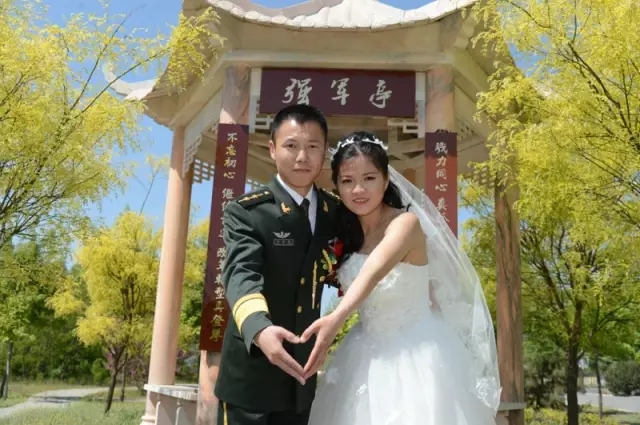 今天身着绿军装的我要牵手追逐绿军装的你,迈向婚礼殿堂,你说我们的爱地老天荒。