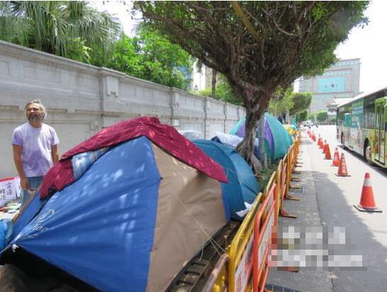 为抗议蔡当局剥夺台湾少数民族100万公顷传统领域土地,岛内少数民族团体在蔡英文办公室门前凯达格兰大道上的扎营抗争今天也已进入第87天。
