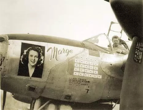 理查德自认射术不够精湛,因此开火时往往要最大限度地靠近对方的飞机,以确保一击必中,从凌空爆炸的敌机残骸中穿过是他的家常便饭。一名被俘的日军飞行员曾说,在天上最害怕遇到的不是成群的B-17轰炸机,而是那架喷涂着美女照片的P-38“闪电”战斗机,因为那个疯狂的飞行员通常会在拼刺刀的距离向他开火。飞机上的美女虽然在微笑,却传递出令人胆寒的杀气。