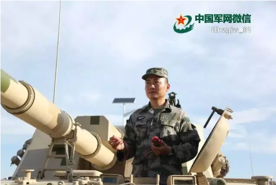 徐广成完成火炮的检测任务后与战车合影。鲁小博 摄
