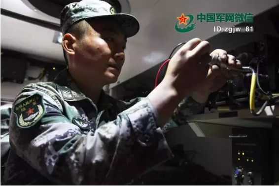 徐广成在火炮内认真检测电台电路。鲁小博 摄