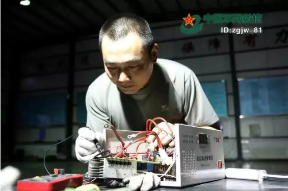徐广成挑灯夜战维修火炮电源。鲁小博 摄