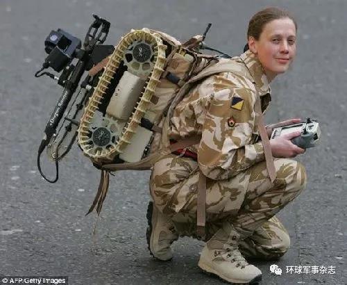 英国皇家后勤兵团一名士兵正在示范最新的小型拆弹机器人,其控制器类似游戏手柄。