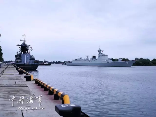▲7月21日,参加中俄“海上联合—2017”演习的中国海军舰艇编队抵达俄罗斯波罗的斯克军港。图为中国海军导弹驱逐舰合肥舰进港。记者陈国全 摄