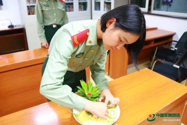 不仅亲自做月饼,武警北京总队十三支队的女兵还开展了“水果拼盘大赛”。
