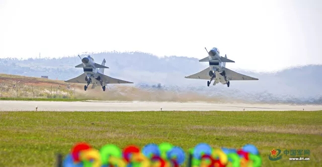 双机编队升空。