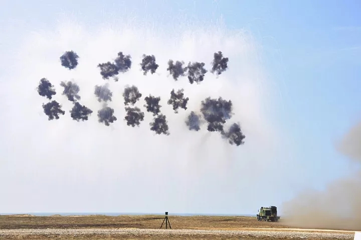 该旅某型装备正在发射烟幕弹,隐蔽我方军事设施 董仕昭摄