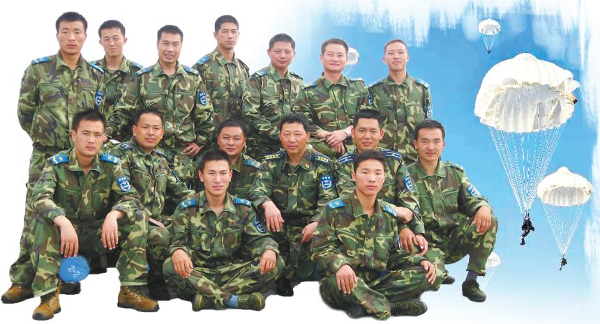 图为10年前空降兵15勇士从震区归来后在机场的合影:从左往右、从后到前依次为——刘文辉、李玉山、王磊、赵海东、刘志保、雷志胜、殷远、赵四方、王君伟、任涛、李振波、于亚宾、郭龙帅、李亚军、向海波。