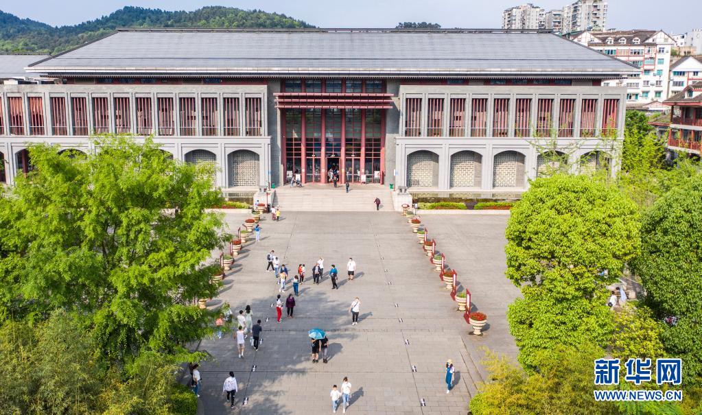 游客在遵义会议纪念馆参观(5月3日摄,无人机照片)。新华社记者 陶亮 摄
