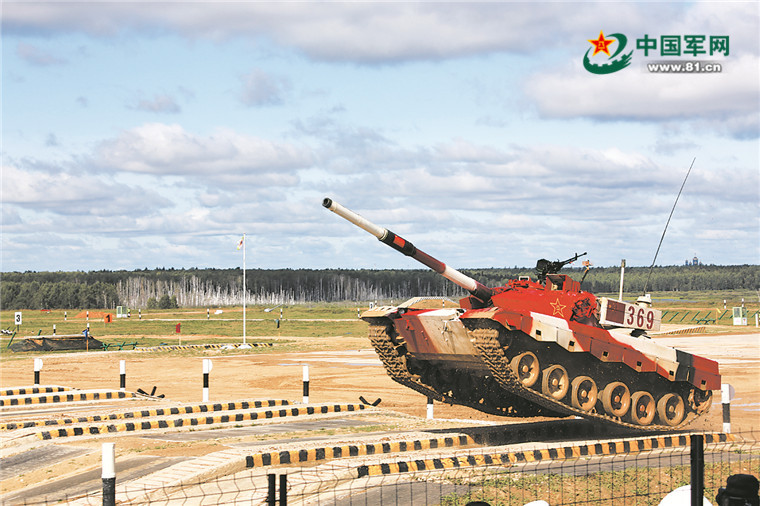 解放军报莫斯科8月22日电 记者王卫东、通讯员王东刚报道:当地时间8月22日上午,“国际军事比赛-2021”“坦克两项”在莫斯科阿拉比诺靶场开赛。在当日结束的单车赛第一组第一场比赛中,编号369的我军96B坦克在俄罗斯队之后位居第二名。