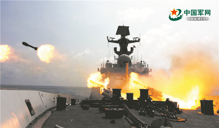 南部战区海军某驱逐舰支队组织海上实兵实弹演练。陈润楚摄
