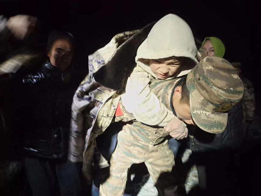 2023年12月19日,武警甘肃总队临夏支队官兵在甘肃省临夏回族自治州积石山县刘集乡阳屲村展开救援。新华社发(侯崇慧 摄)