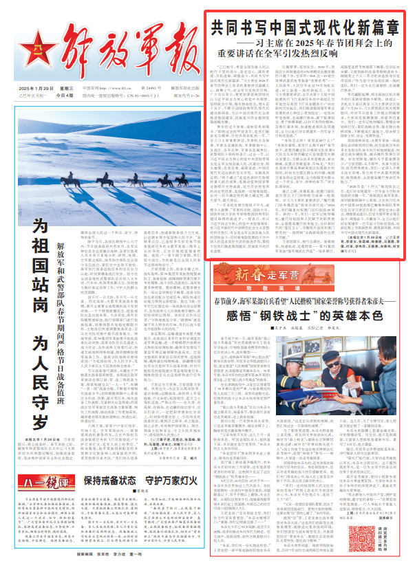 ——习主席在2025年春节团拜会上的重要讲话在全军引发热烈反响