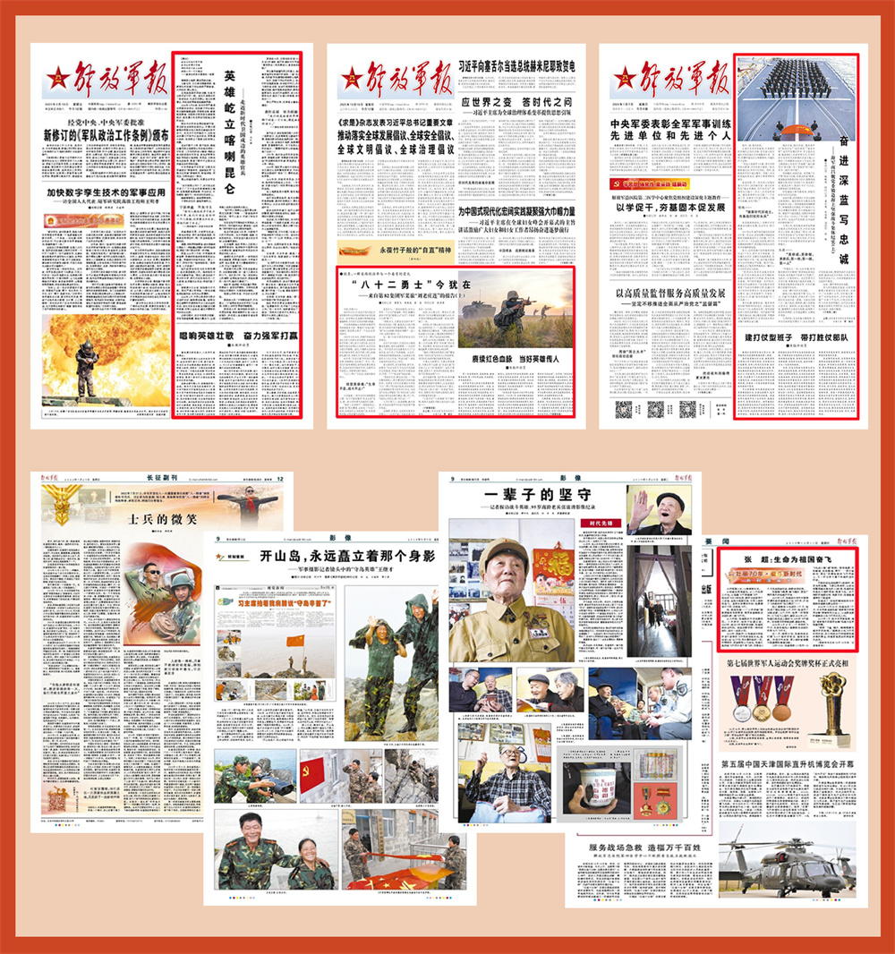 “清澈的爱,只为中国。”2021年初春,烈士陈祥榕的心声,在解放军报独家报道《英雄屹立喀喇昆仑》中首次披露。由军报记者发现并记录的这位18岁烈士的战斗口号风靡全国,成为“当代中国青年发自内心的最强音”。张富清、王继才、张超、杜富国,新时代卫国戍边英雄群体、海军南昌舰党委、“刘老庄连”……一个个英雄的名字,一个个英雄群体的事迹,通过军报记者的笔触镜头,走向全军全国。