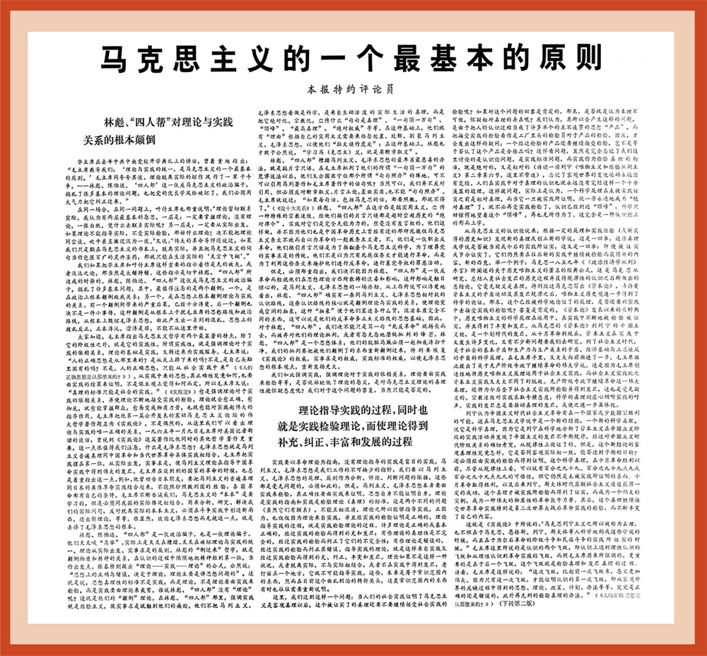 解放军报特约评论员文章《马克思主义的一个最基本的原则》。