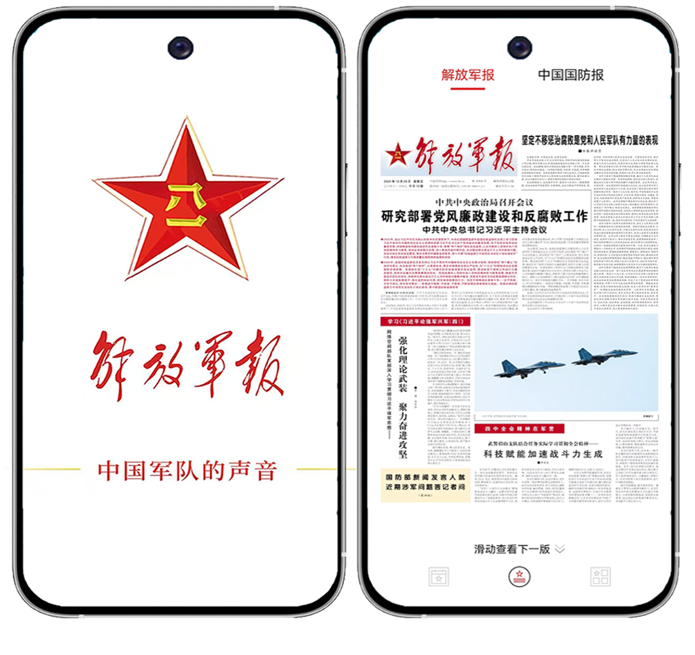 在毛泽东同志为解放军报题写的报头旁,中国人民解放军军徽格外醒目。在手机上点开解放军报客户端,这颗红星从屏幕中跃出,熠熠生辉。