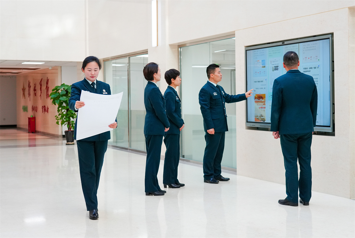 解放军报编辑在电子评报栏前。栾铖 摄