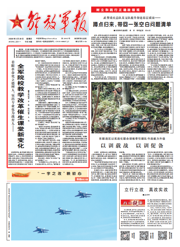 编者按 习主席在出席十四届全国人大四次会议解放军和武警部队代表团全体会议时强调,要加强革命化专业化人才队伍建设。习主席的重要讲话,对做好我军人才工作提出新部署新要求,为全面加强新时代我军人才工作提供了行动指南和根本遵循。作为培育革命化专业化人才的主阵地,全军院校全面贯彻落实新时代军事教育方针,深入研究现代军事教育特点规律,不断深化教学改革,催生诸多课堂新变化,助推新型军事人才加速成长,为强军事业注入澎湃动能。