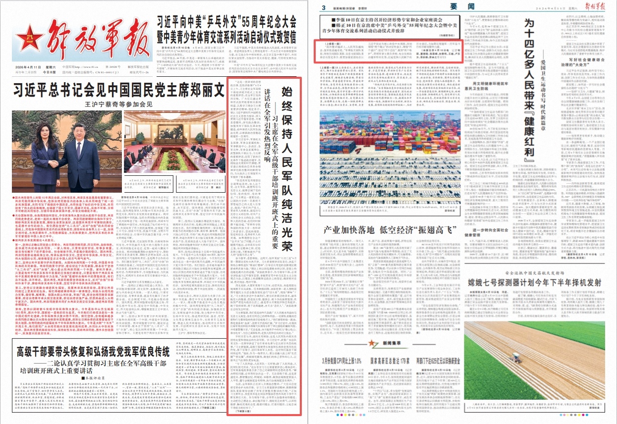 (解放军报北京4月10日电 记者邹琪、董晓晗、张磊峰、向黎鸣、王越、卢东方、李庆桐、李由之等采写)