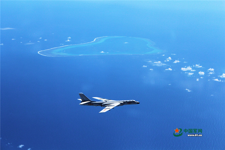 轰-6K战机在黄岩岛上空巡航。刘锐 摄