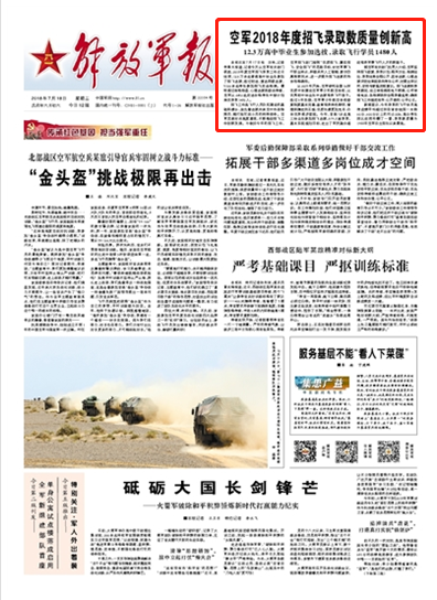 空军2018年度招飞录取数质量创新高