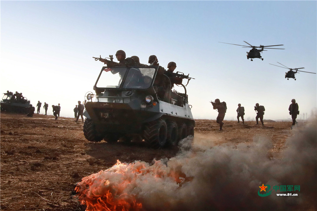 当天15时02分,迎着隆冬的寒风,由武装直升机、运输直升机组成的飞行编队,搭载着数十名突击步兵,向着目标空域超低空突击。