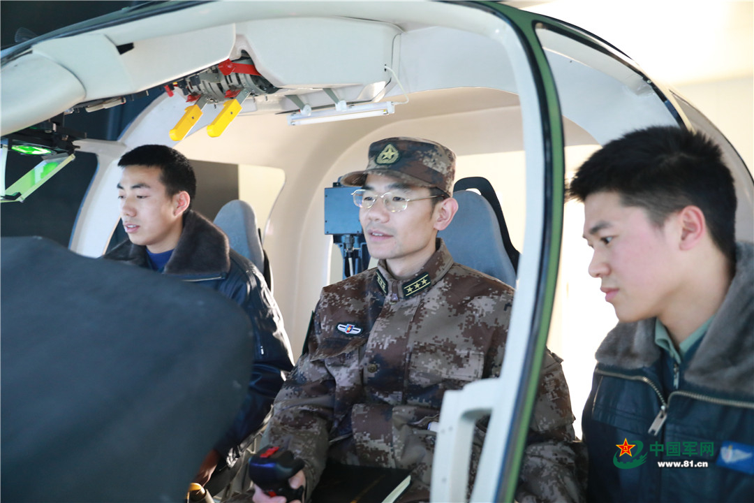 解放军报记者钱晓虎操作飞行模拟系统。文茂昌摄