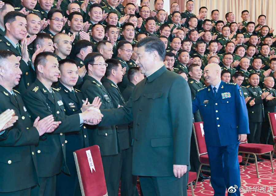 习近平强调,今年是我国决胜全面建成小康社会、决战脱贫攻坚之年,也是我军实现国防和军队建设2020年目标任务之年,各方面任务艰巨繁重。要坚持以新时代中国特色社会主义思想为指导,贯彻新时代党的强军思想,贯彻新时代军事战略方针,坚持政治建军、改革强军、科技强军、人才强军、依法治军,强化使命担当,聚力攻坚克难,狠抓工作落实,坚决完成党和人民赋予的各项任务。