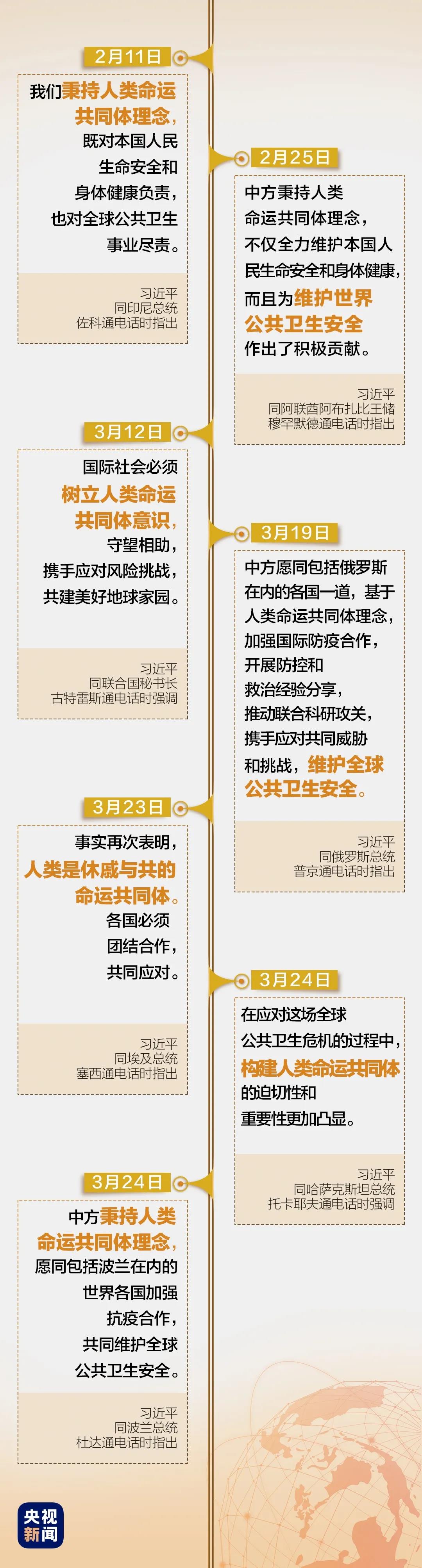 习近平主席在二十国集团领导人特别峰会上表示,中方秉持人类命运共同体理念,愿同各国分享防控有益做法,开展药物和疫苗联合研发,并向出现疫情扩散的国家提供力所能及的援助。