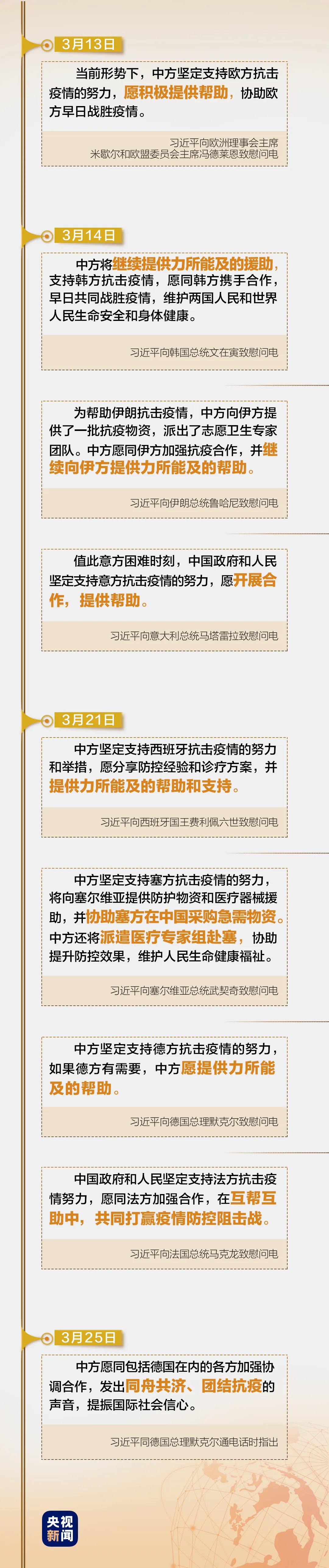 3月26日,习近平主席复信世界卫生组织总干事谭德塞时表示,中方将在力所能及范围内,继续为国际社会抗击疫情提供支持。
